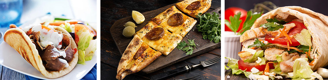 Pide Topped With Mince Lamb, Cheese, Tomatoes, Green Peppers & Seasonings